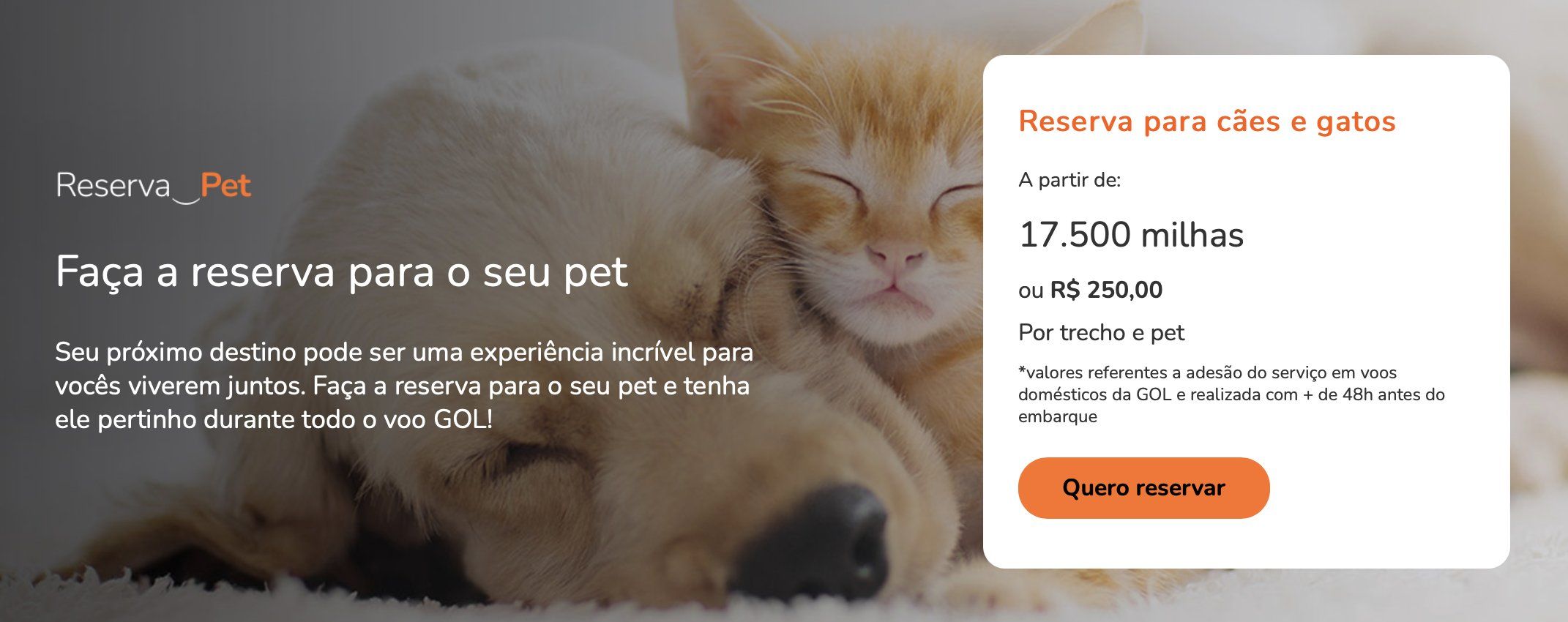 5. Selecione ‘Reserva Pet’e prossiga com as informações solicitadas.