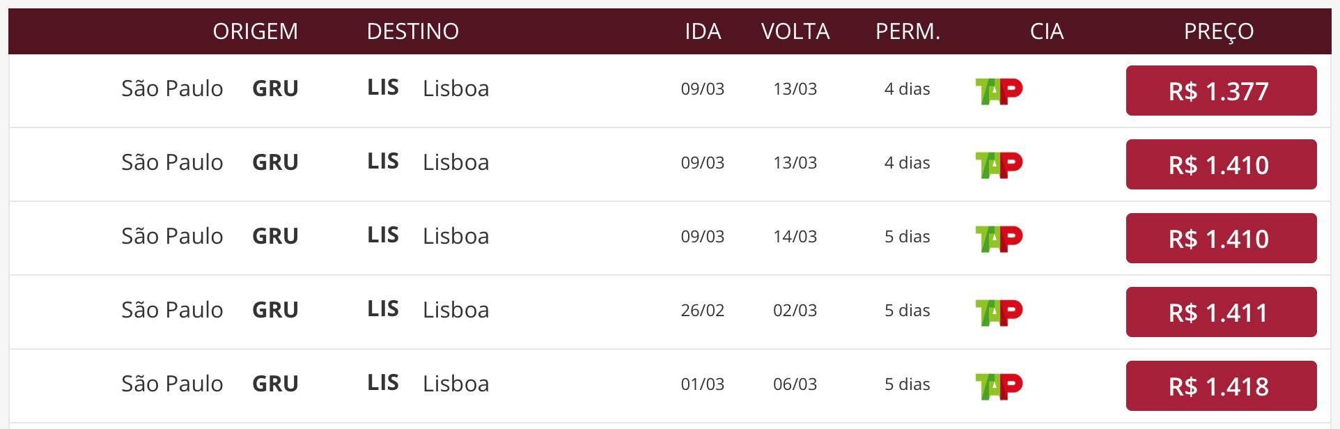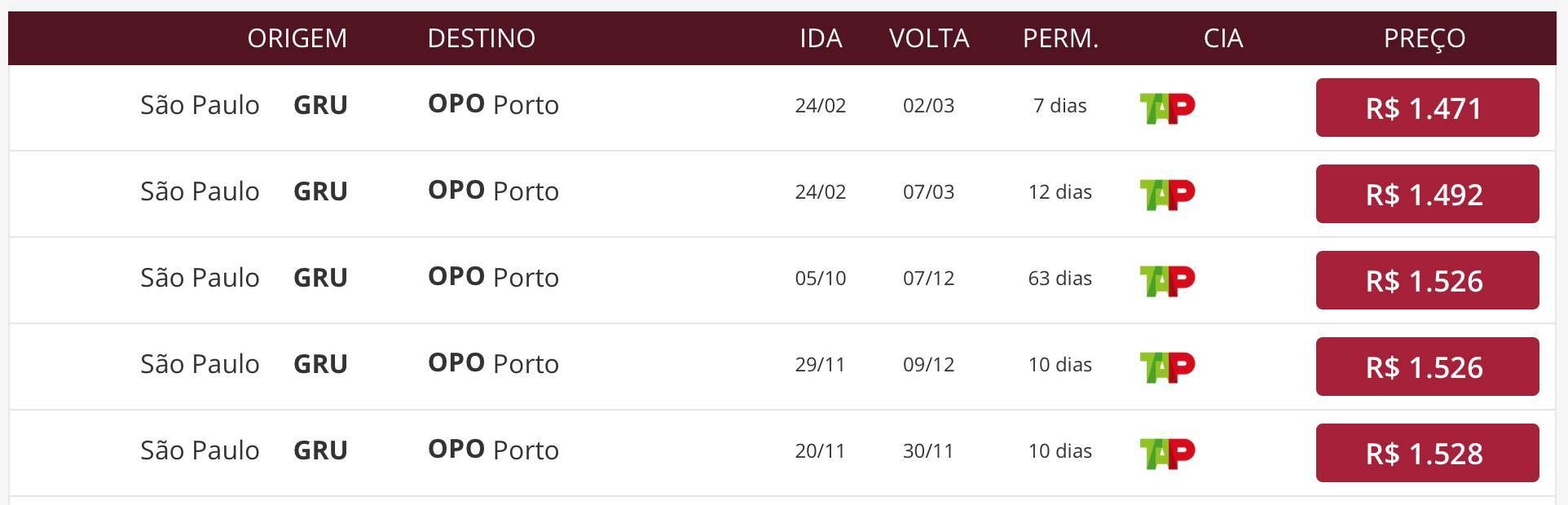 Já para Porto encontramos passagens a partir de R$1.471 saindo de São Paulo: