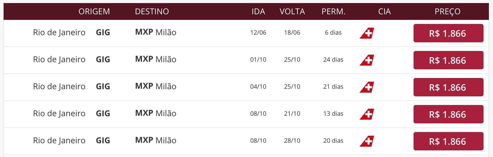 Já para Milão encontramos passagens a partir de R$1.866 saindo de São Paulo e do Rio de Janeiro. Há também boas ofertas partindo de outras cidades: