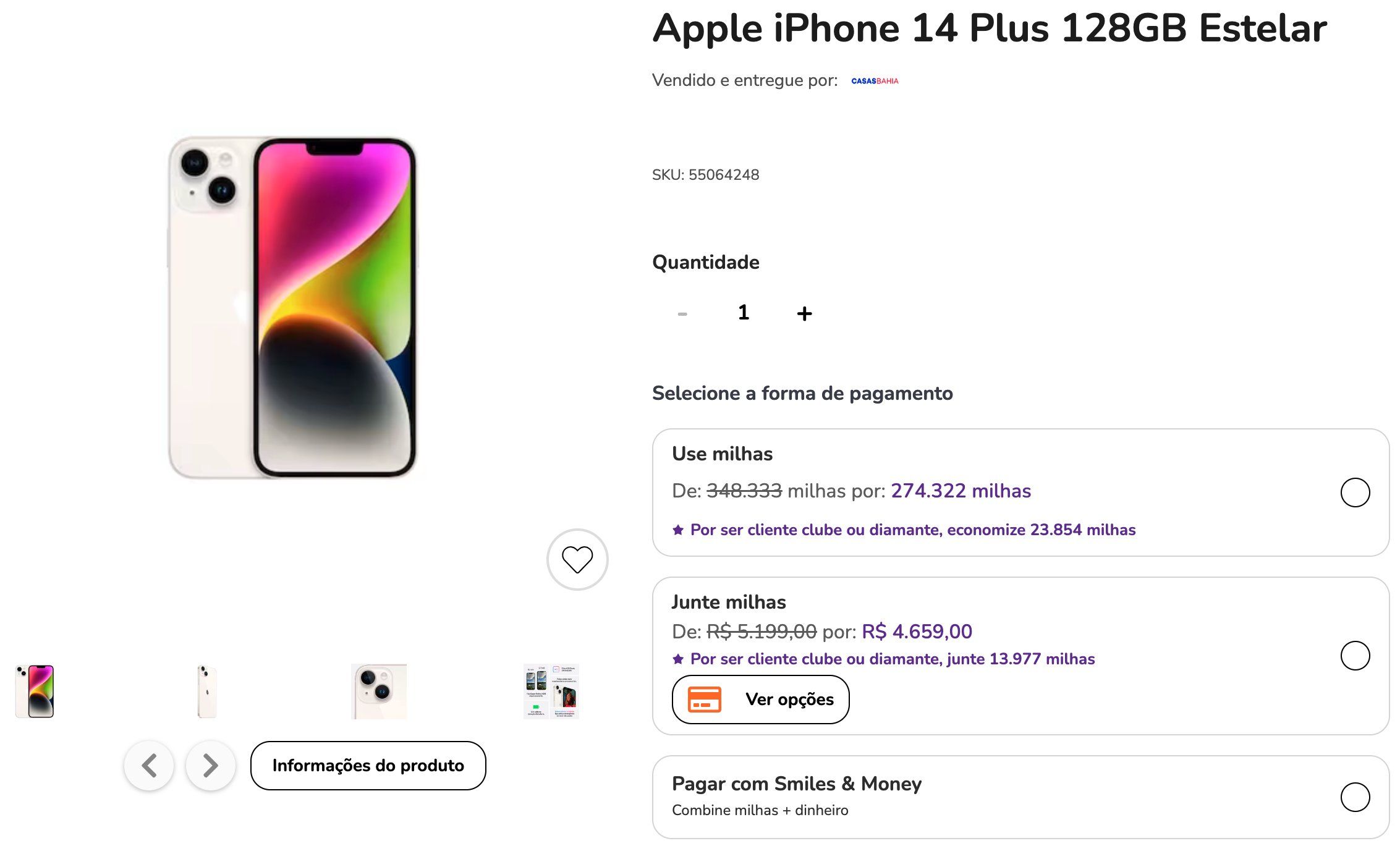 Essa promoção de até 55% de desconto em resgates é um presentão para quem tem milhas na Smiles e já estava mirando em alguns produtos das Casas Bahia no Shopping Smiles. Vale lembrar que assinantes do Clube Smiles ou clientes Diamante têm condições de resgate ainda melhores. Assim, se você ainda não faz parte do Clube, aproveite a oportunidade para assinar e garantir os maiores descontos.