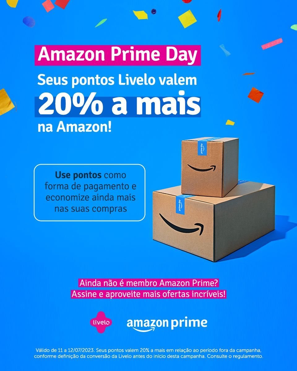 A campanha é válida durante todo o Prime Day, que acontece nesta terça e quarta-feira (11 e 12 de julho). Na oferta, os seus pontos Livelo valem 20% a mais em relação ao período fora da campanha para a utilização como forma de pagamento dentro da Amazon.