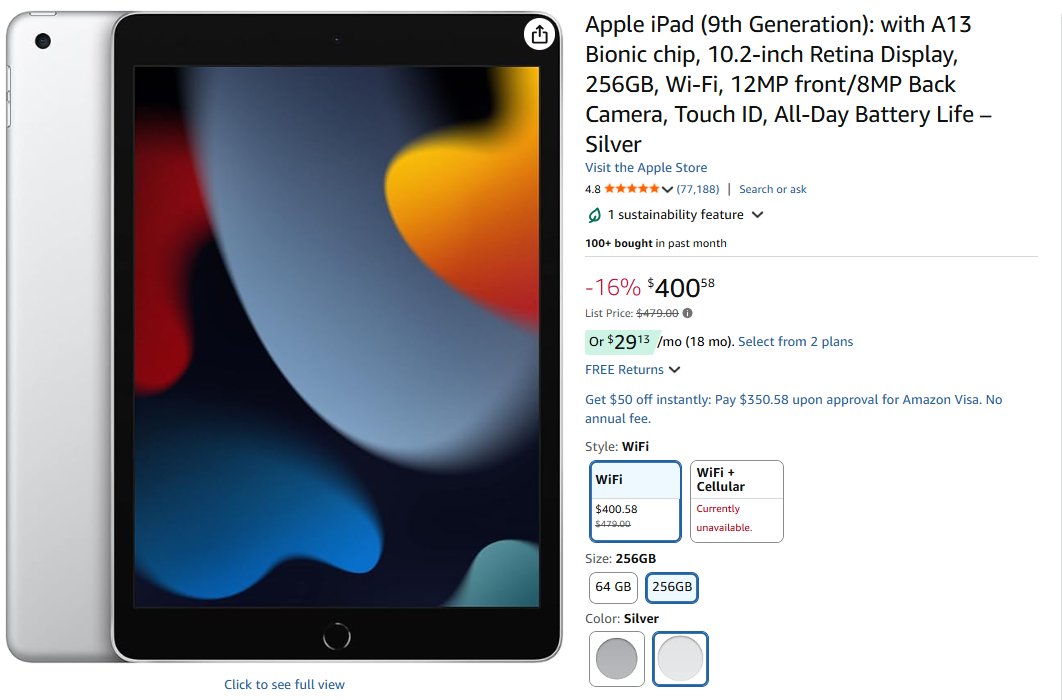 - Apple iPad (9th Generation)|16% de desconto – total U$400,58 – compre aqui