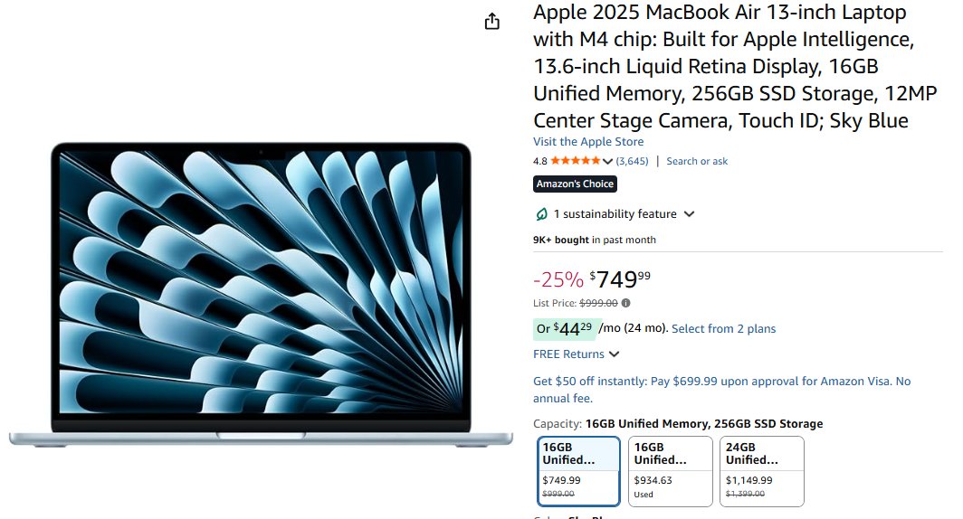 - Apple 2025 MacBook Air| 25% de desconto – total U$749,99 – compre aqui