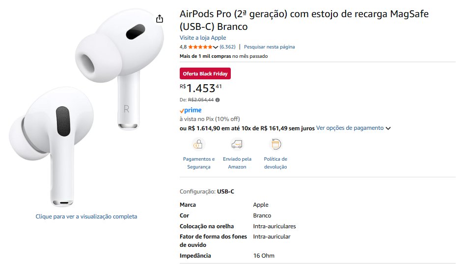 Para efeito de comparação, confira abaixo o preço de um par de Apple AirPods Pro vendido pela Amazon Brasil: