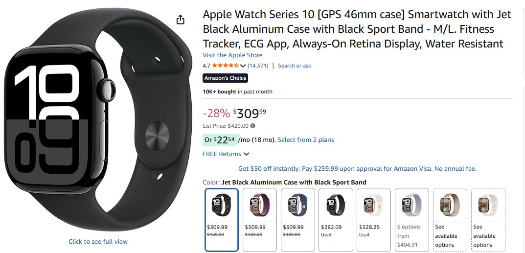 Veja abaixo o exemplo de compra de alguns Apple Watches vendidos com desconto pelo site da Amazon dos EUA:
