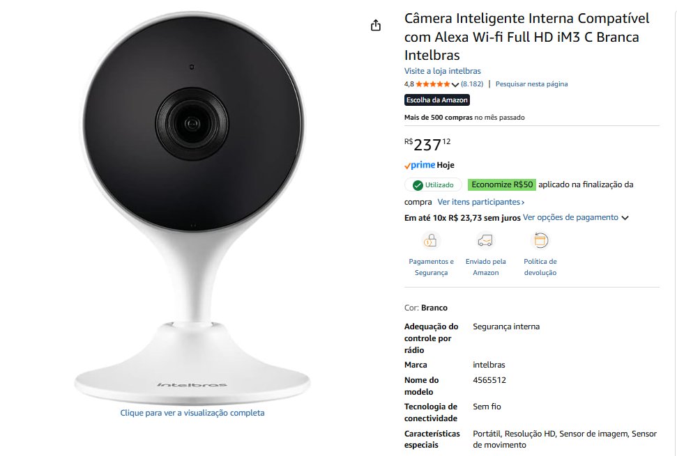 - Câmera Inteligente| total R$ 237,12 – compre aqui