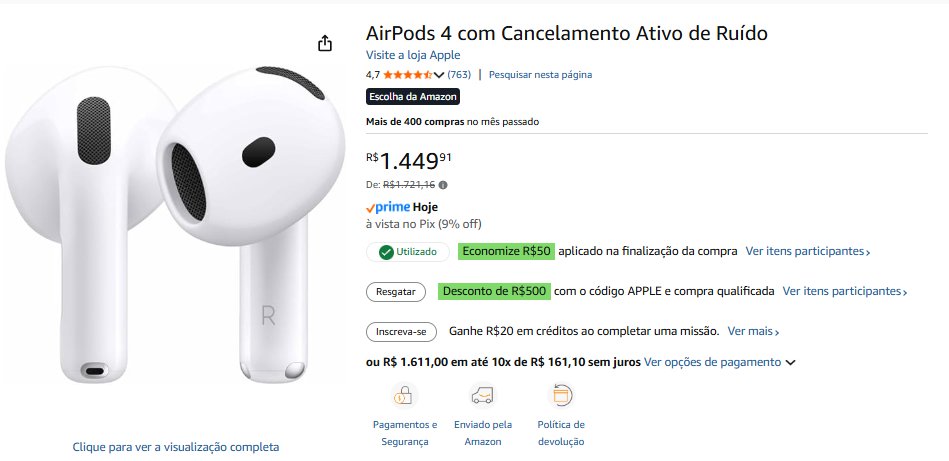 - AirPods 4|9% de desconto| total R$ 1.449,91 – compre aqui
