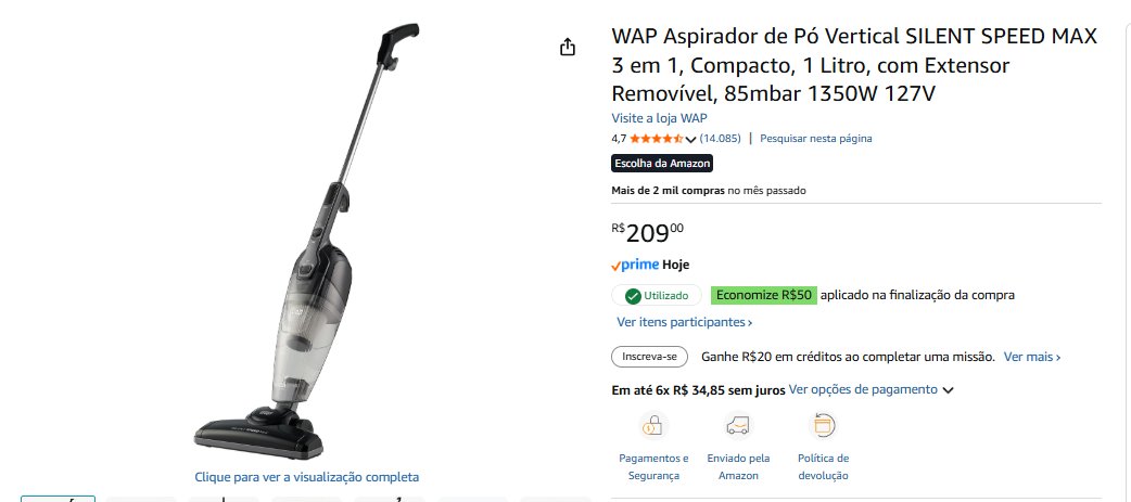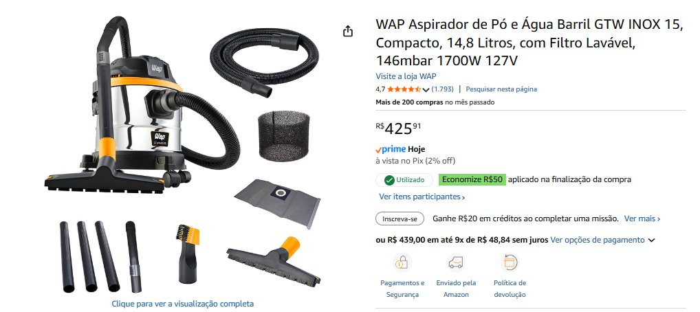 - Wap Aspirador de pó | total R$ 425,91 – compre aqui