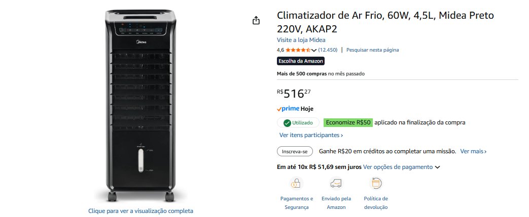 - Climatizador de Ar Frio| total R$ 516,27 – compre aqui