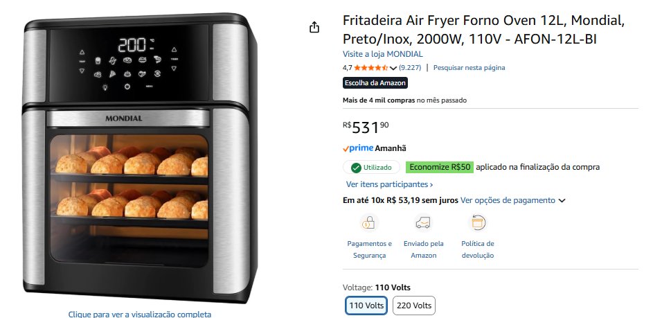 - Fritadeira Air Fryer | total R$ 531,90 – compre aqui