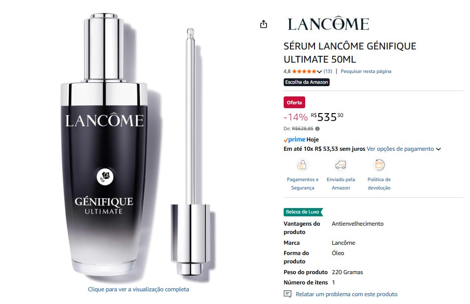 - Sérum Lancôme |14% de desconto – total R$ 535,30 – compre aqui