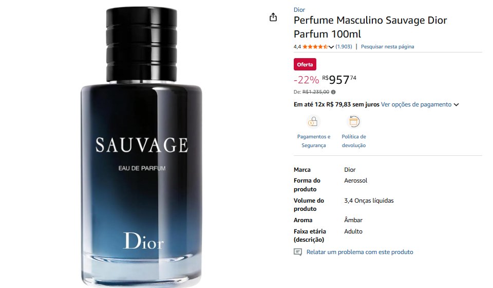 - Perfume Masculino Dior Sauvage |22% de desconto- total R$ 957,74 – compre aqui