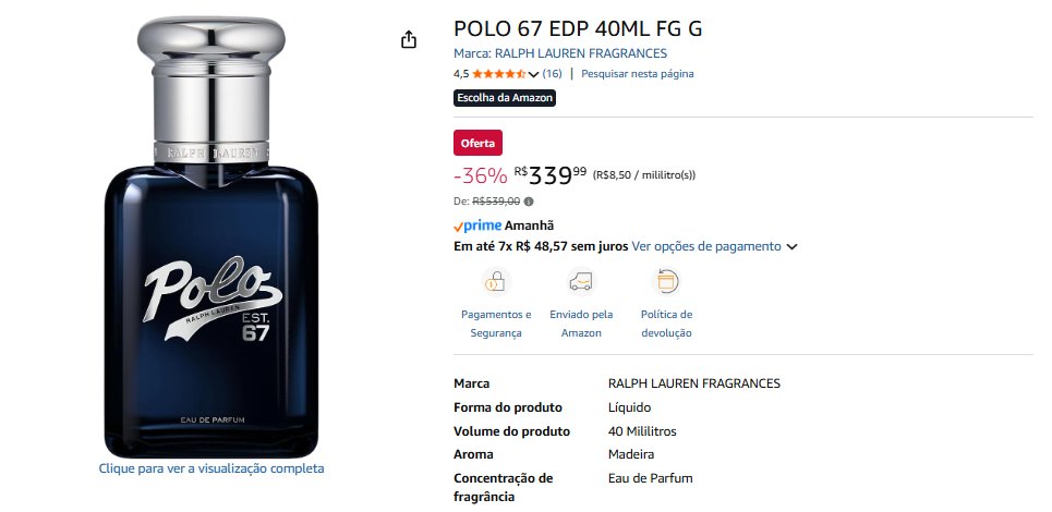 - Perfume Polo 67 | 36% de desconto – total R$ 339,99 – compre aqui