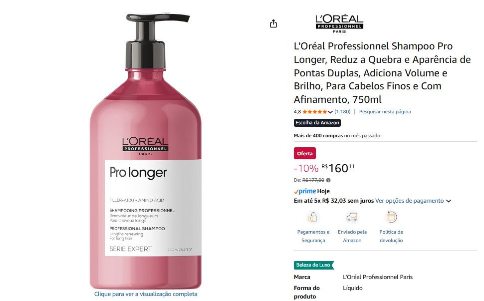 - Shampoo Pro Longer| 10% de desconto – total R$ 160,11 – compre aqui