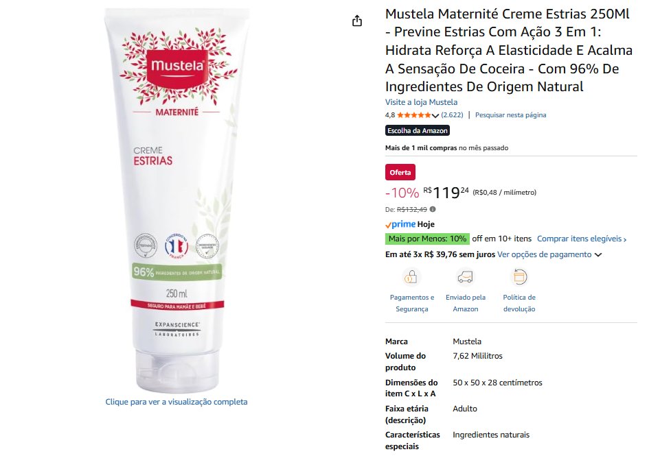 - Mustela Maternité | 10% de desconto – total R$ 119,24 – compre aqui