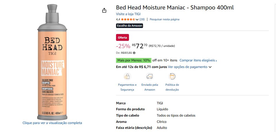- Bed Head Moisture| 25% de desconto – total R$ 72,70 – compre aqui