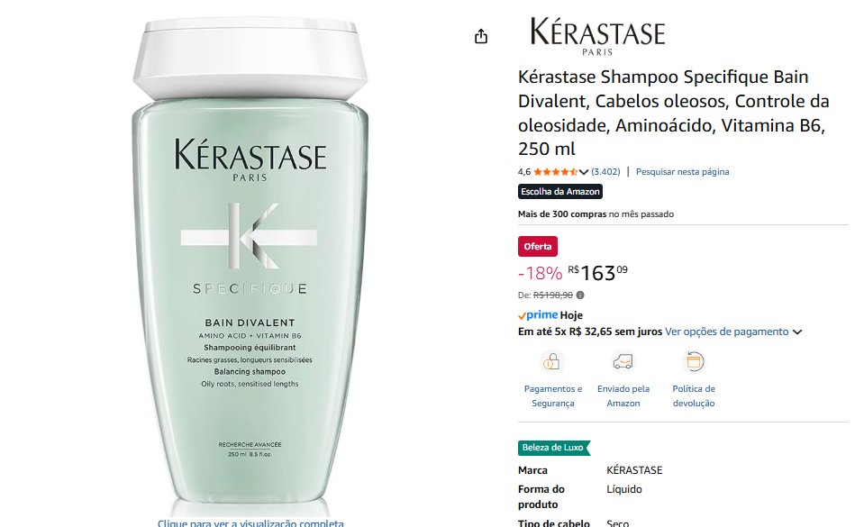 - Kérastase Shampoo| 18% de desconto – total R$ 163,09 – compre aqui