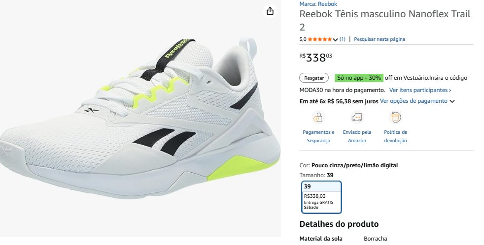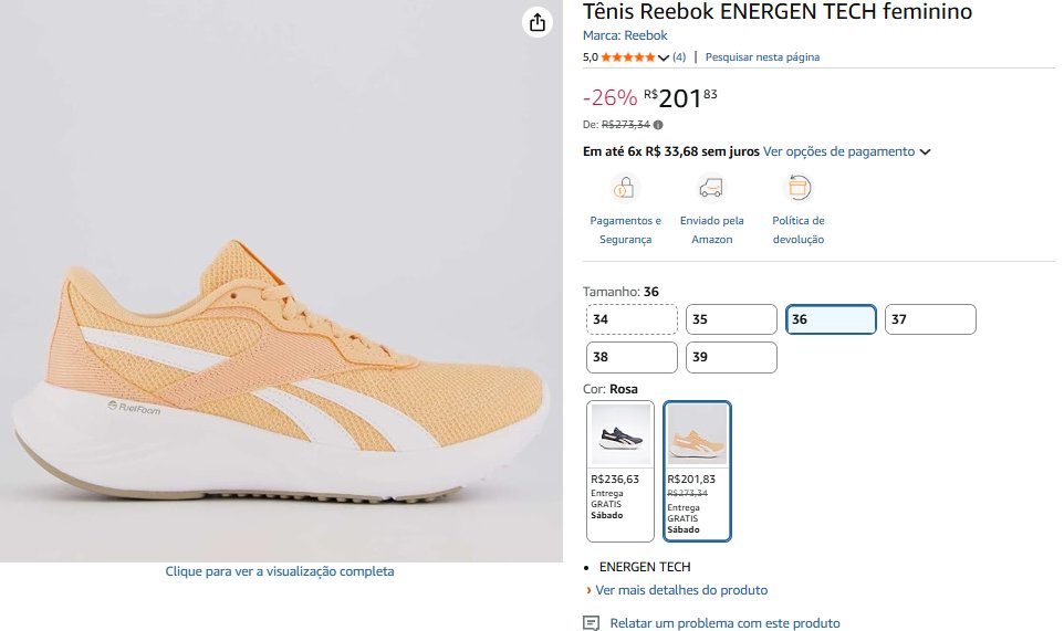 - Tênis Reebok |26% de desconto – total R$ 201,83 – compre aqui