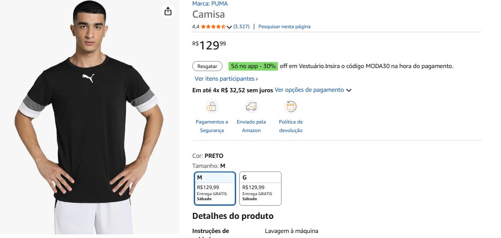 - Camisa Puma| 30% de desconto |total R$ 129,99 – compre aqui