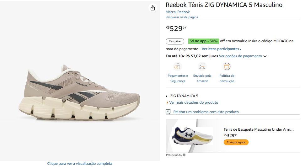 - Reebok Tênis Zig |30% de desconto| total R$ 529,57 – compre aqui