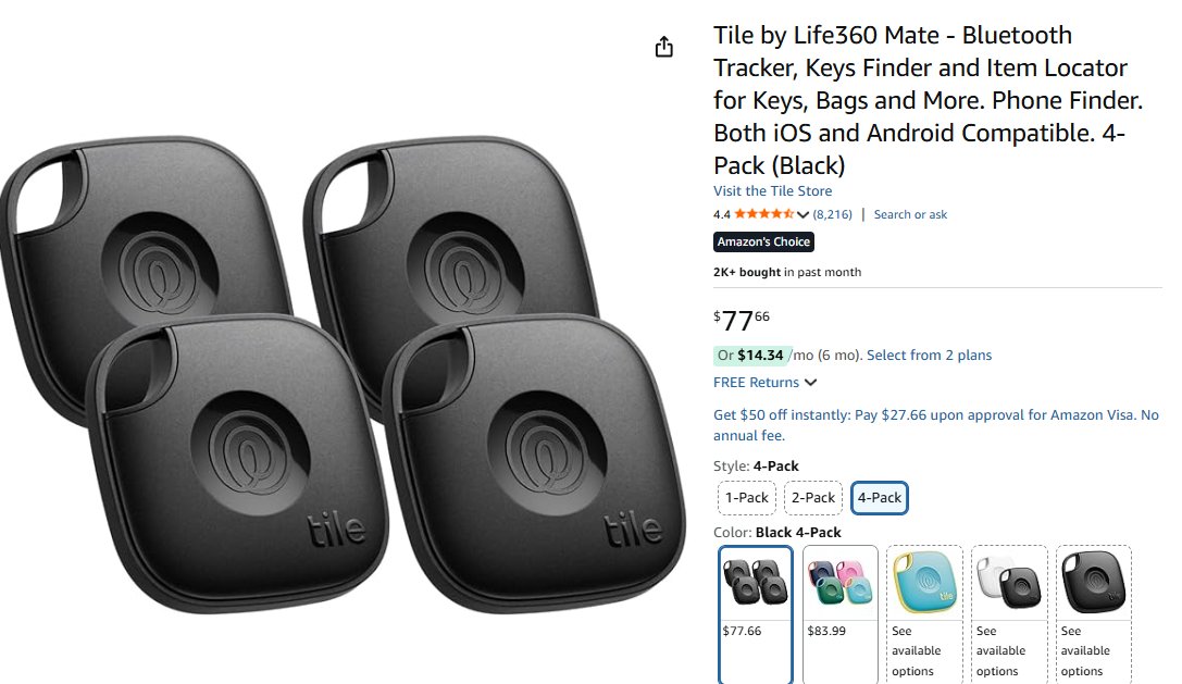 - Tile by Life360 Mate Bluetooth Tracker | total U$74,00 – compre aqui