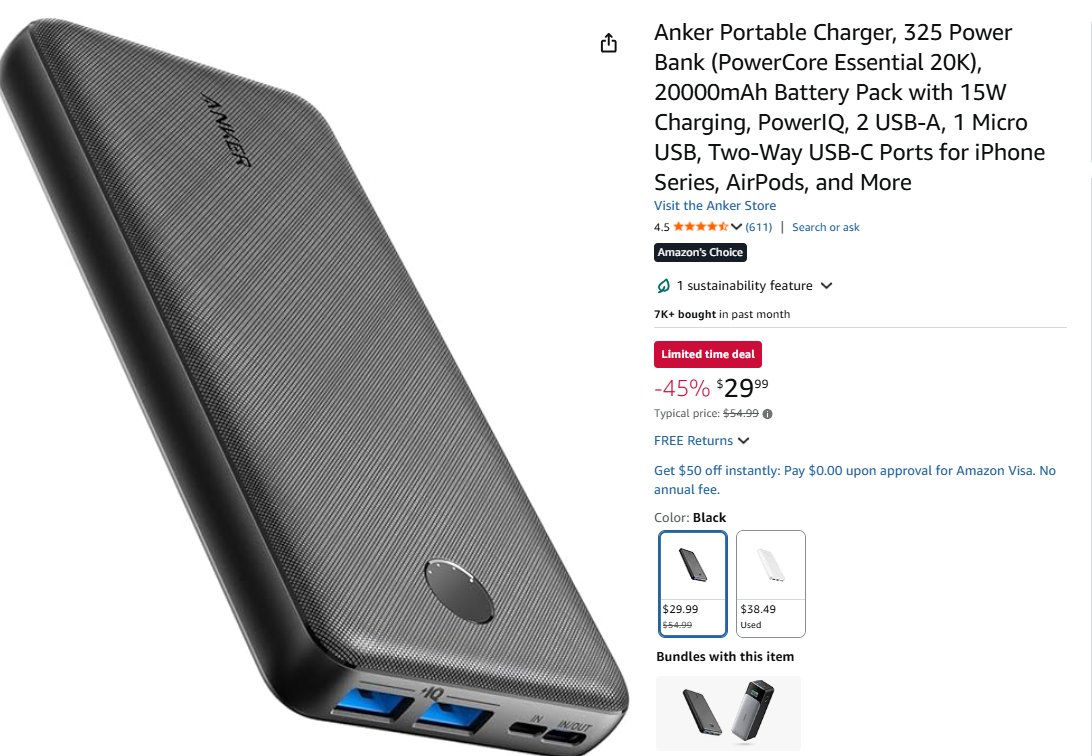 - Anker Portable Charger | 45% de desconto| total U$29,99 – compre aqui