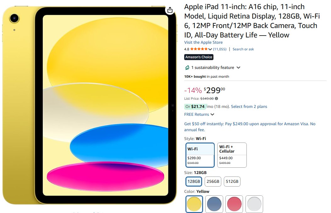 - Apple iPad 11-inch |14% de desconto | total U$299,00 – compre aqui