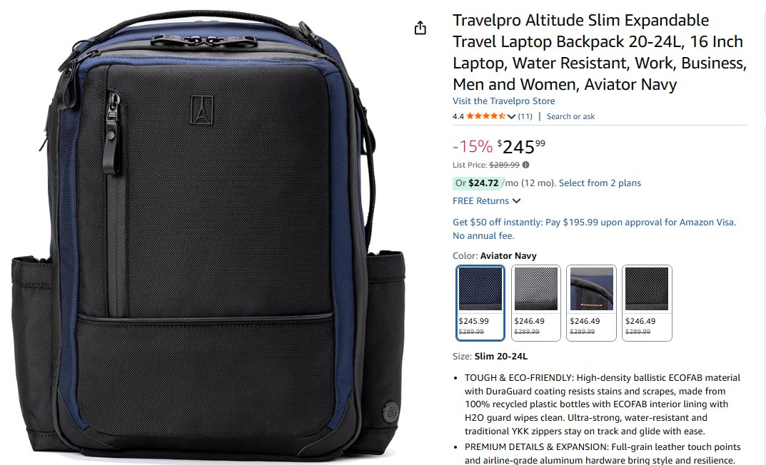 - Travelpro Altitude Slim Expandable | 15% de desconto | total U$245,99 – compre aqui