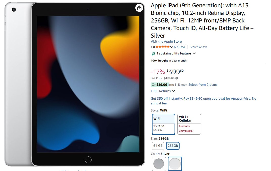 - Apple iPad (9th Generation) | 17% de desconto| total U$399,60 – compre aqui