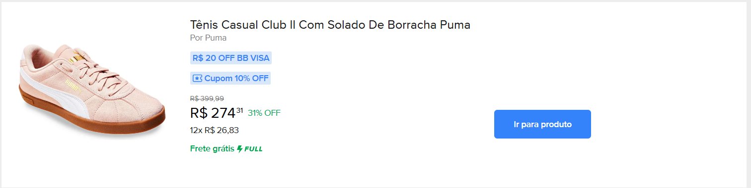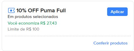 Essa pode ser uma boa oportunidade para fazer a compra de algum item da marca Puma que você gostaria por um custo reduzido. Atente-se que os descontos são válidos por tempo indeterminado e pode acabar a qualquer momento.