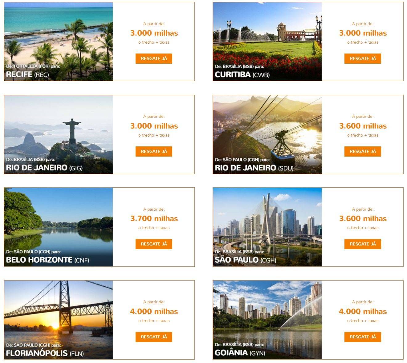 O Smiles esta com uma promoção bacana para voos domésticos. Tem resgate a partir de 3.000 milhas o trecho!