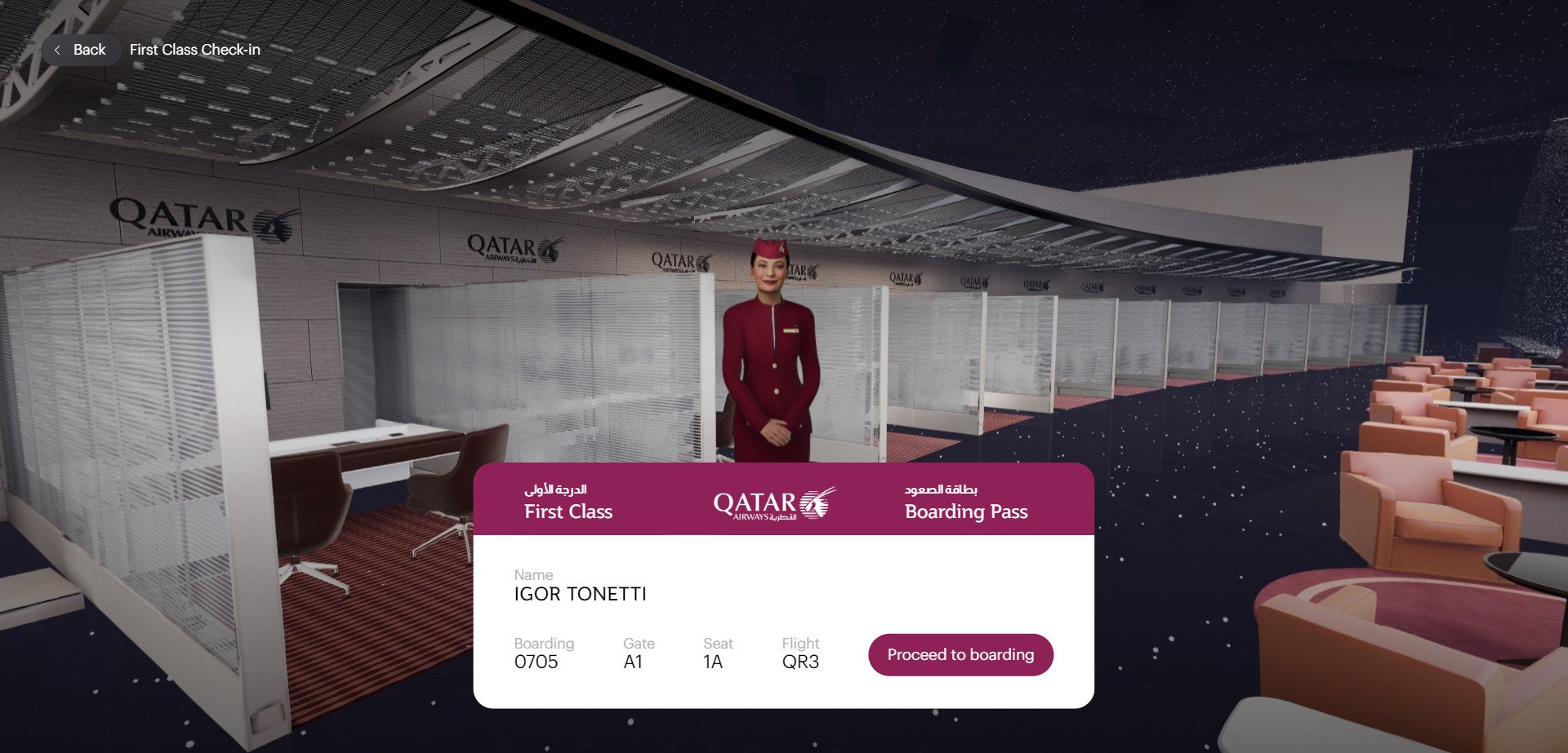 Vale lembrar que algumas companhias lançaram tecnologias parecidas, como a Austrian Airlines, do Grupo Lufthansa, que permitia que o internauta escolhesse o assento por experiência em 3D. Mas diferente da Qatar Airways, a experiência da Austrian não contava com a tripulante meta-humana, nem dava a opção do navegante conhecer o processo de check-in.