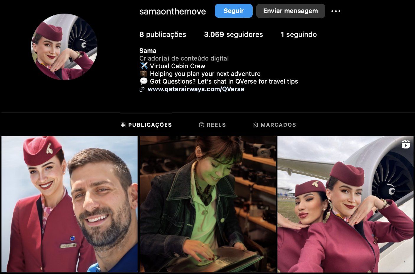 Confira o Instagram da comissária de bordo digital da Qatar Airways