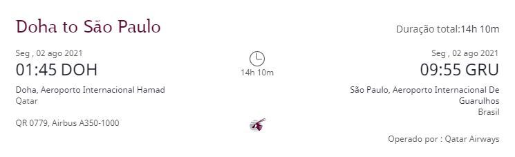 Essa é uma excelente notícia! A opção de dois voos no mesmo dia já estava presente na rota, porém, sendo realizados apenas três vezes na semana. Com a novidade, os passageiros vão poder contar com as duas opções todos os dias entre São Paulo e Doha.