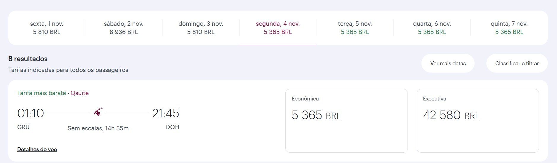 Doha (GRU) x São Paulo (GRU)
