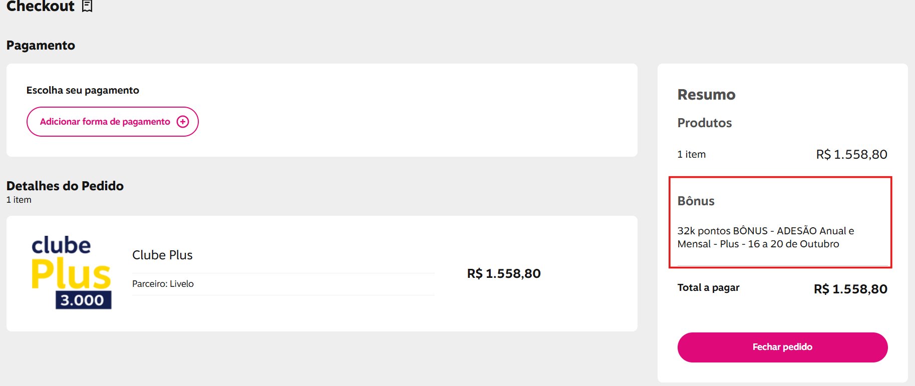 Confira a bonificação para as novas adesões ou upgrades para o Clube Livelo Plus, nas modalidades mensal ou anual: