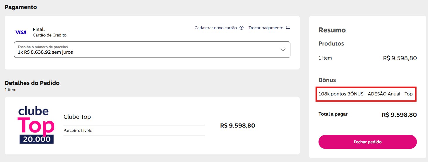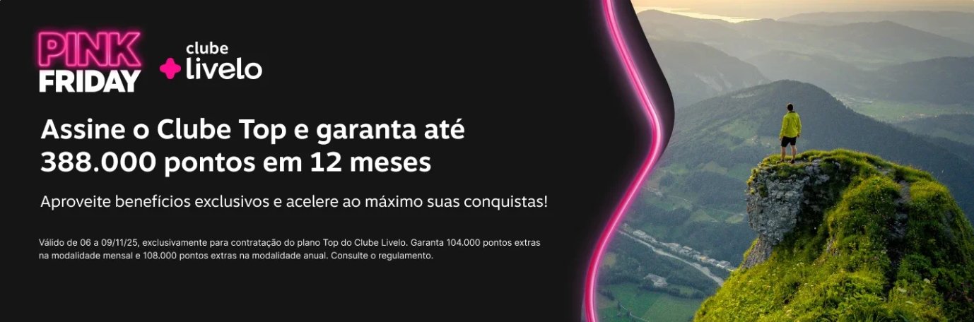 - Campanha válida para adesões ao Clube Livelo Top realizadas nas modalidades de pagamento anual e mensal.
