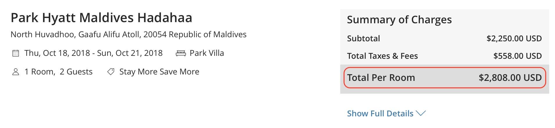 O Park Hyatt Maldives Hadahaa é classificado pelo Hyatt como categoria 6, ou seja 25.000 pontos/noite.