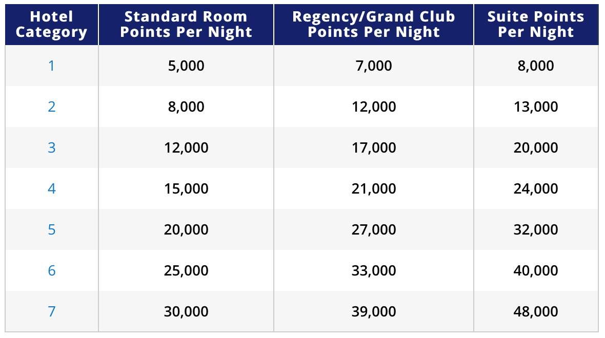 O World of Hyatt classifica seus hotéis por categorias que variam de 1 a 7, e para cada um deles existe um custo por diária:
