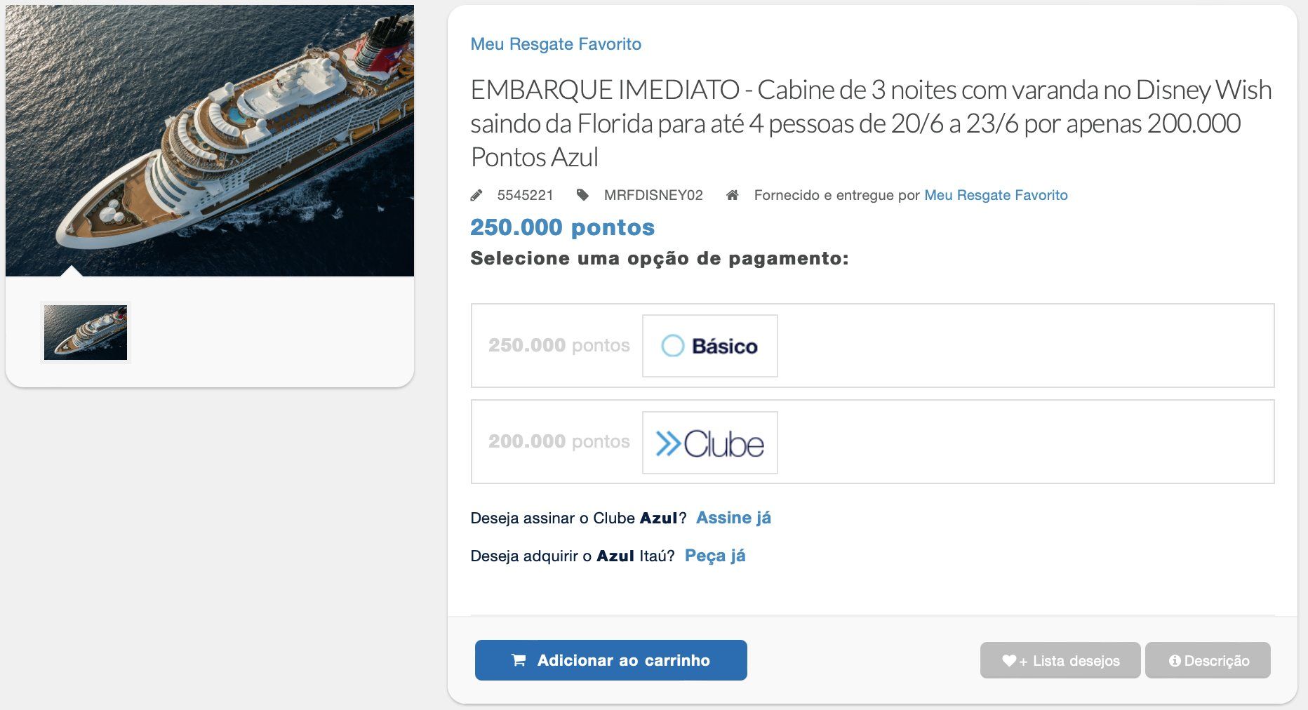 Resgate Favorito! O Azul Fidelidade está oferecendo o resgate de um pacote de 3 noites a bordo do Disney Wish por apenas 200.000 pontos. A campanha é válida somente hoje (12) ou enquanto durarem os estoques. Aproveite, pois são poucas unidades!