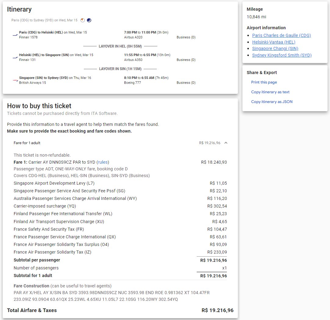 Como mostra a imagem acima, o valor pago do mesmo voo ultrapassa os 18 mil reais, além de taxas.