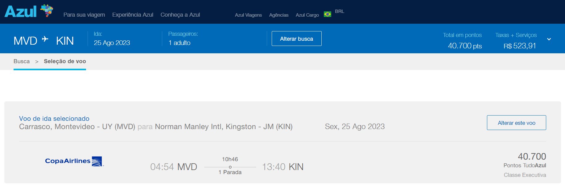 Resgates de Primeira – Passagem em Classe Executiva de Montevidéu para Kingston com pontos TudoAzul
