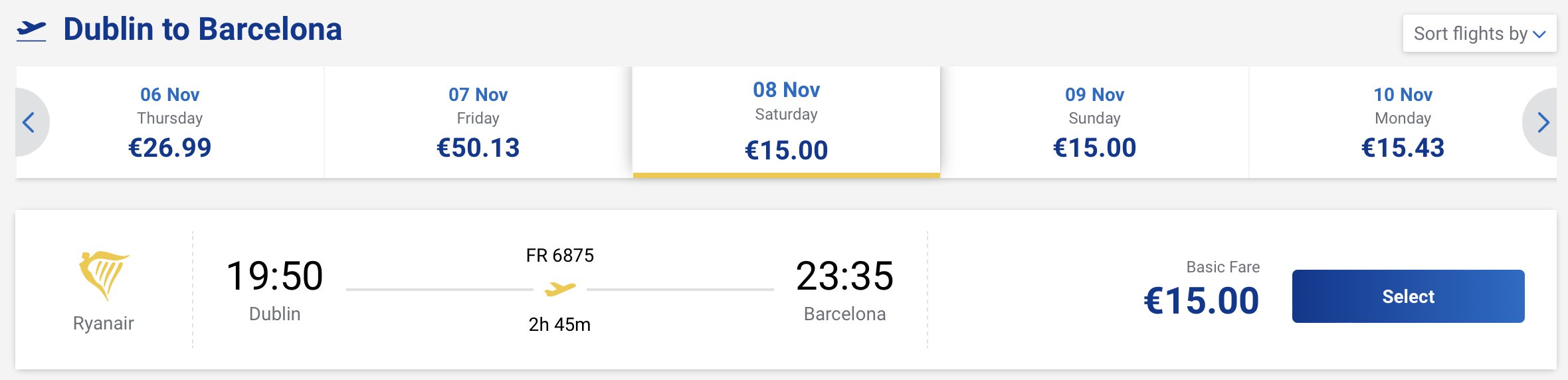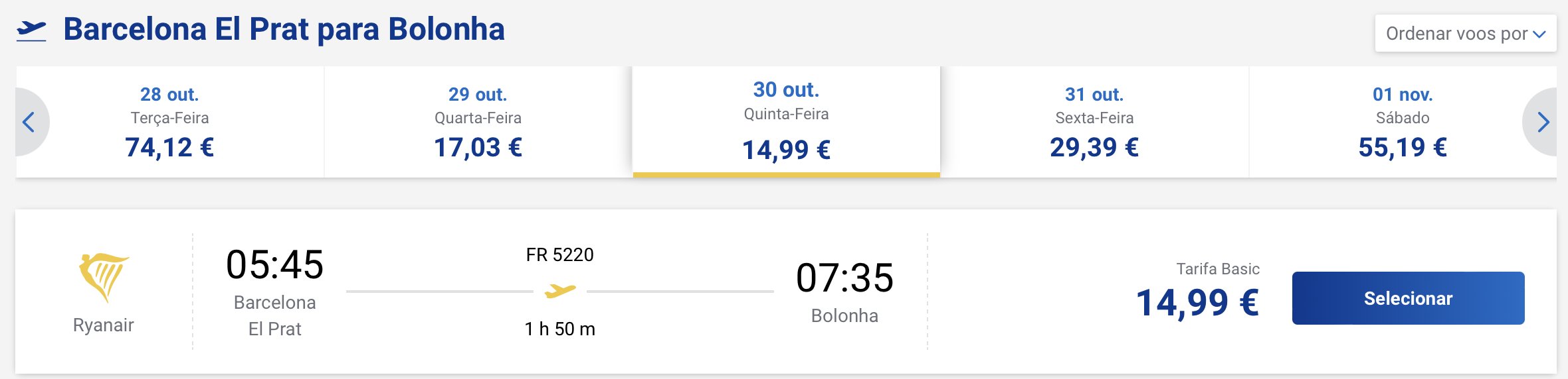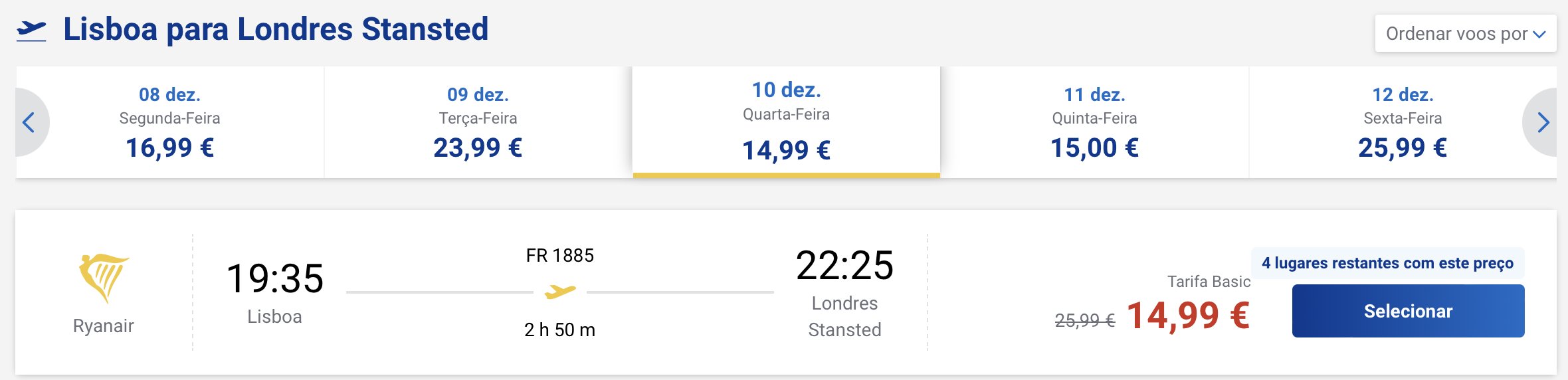 Confira abaixo exemplos de passagens promocionais da Ryanair: