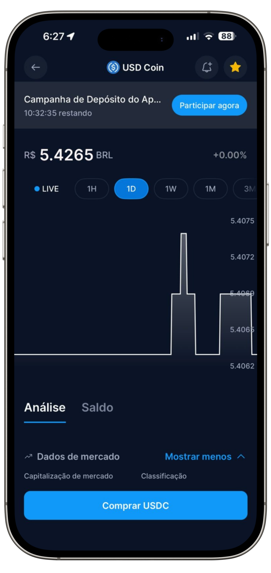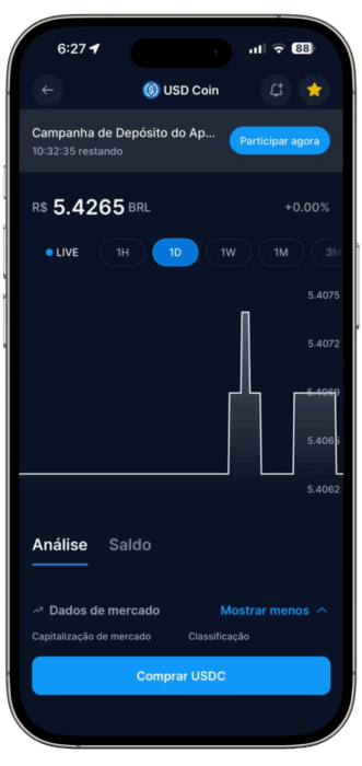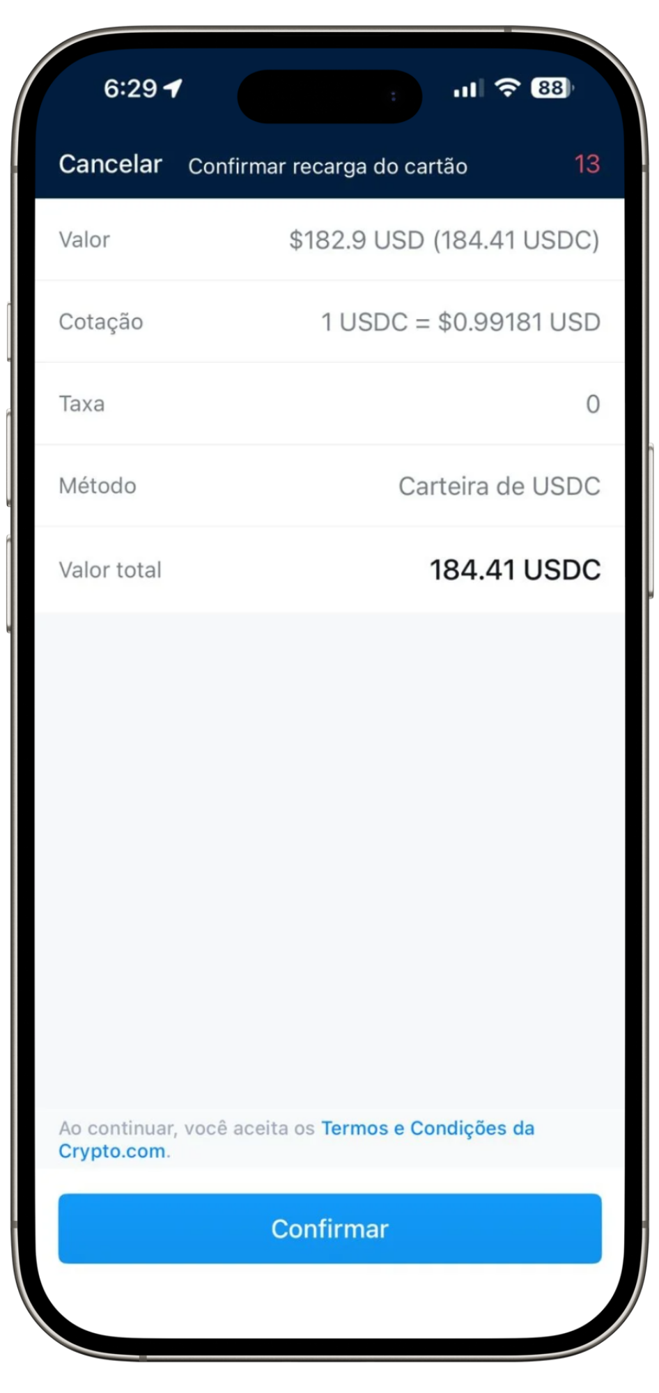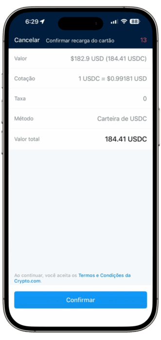 Como mencionamos, o um dos grandes diferenciais do Cartão Global Visa Crypto.com está na forma de carregamento do cartão com USDC, onde o valor é mantido na proporção aproximada de 1 USDC ≅ 1 dólar, sem cobrança de IOF e spread reduzido. Isso garante uma cotação muito mais próxima ao dólar comercial, representando economia real para quem precisa de moeda estrangeira, seja para compras internacionais ou para viagens ao exterior.