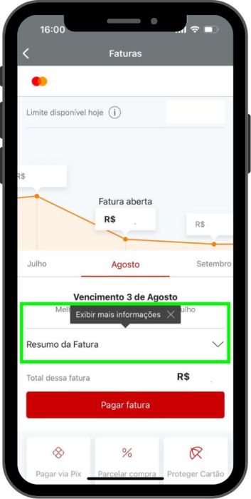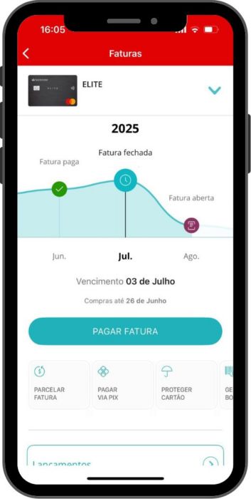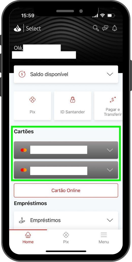 - Na página inicial, clique no cartão que deseja verificar a fatura;