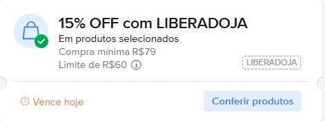 - 15% off, chegando até R$ 60 de desconto, em compras a partir de R$ 79, com o cupom ‘LIBERADOJA‘ [sem aspas];