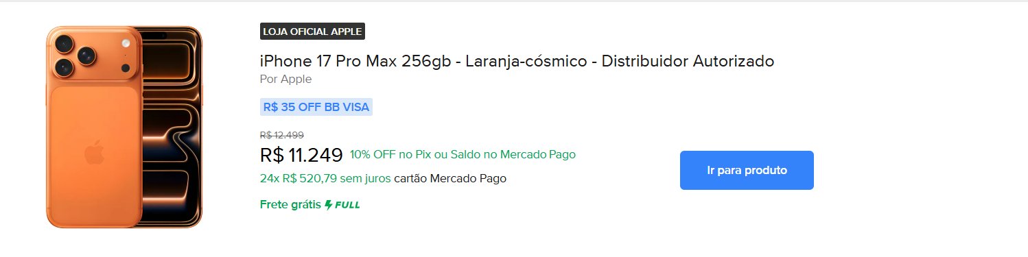 Pensa em aproveitar? Acesse o site do Mercado Livre para ver essa e outras promoções.