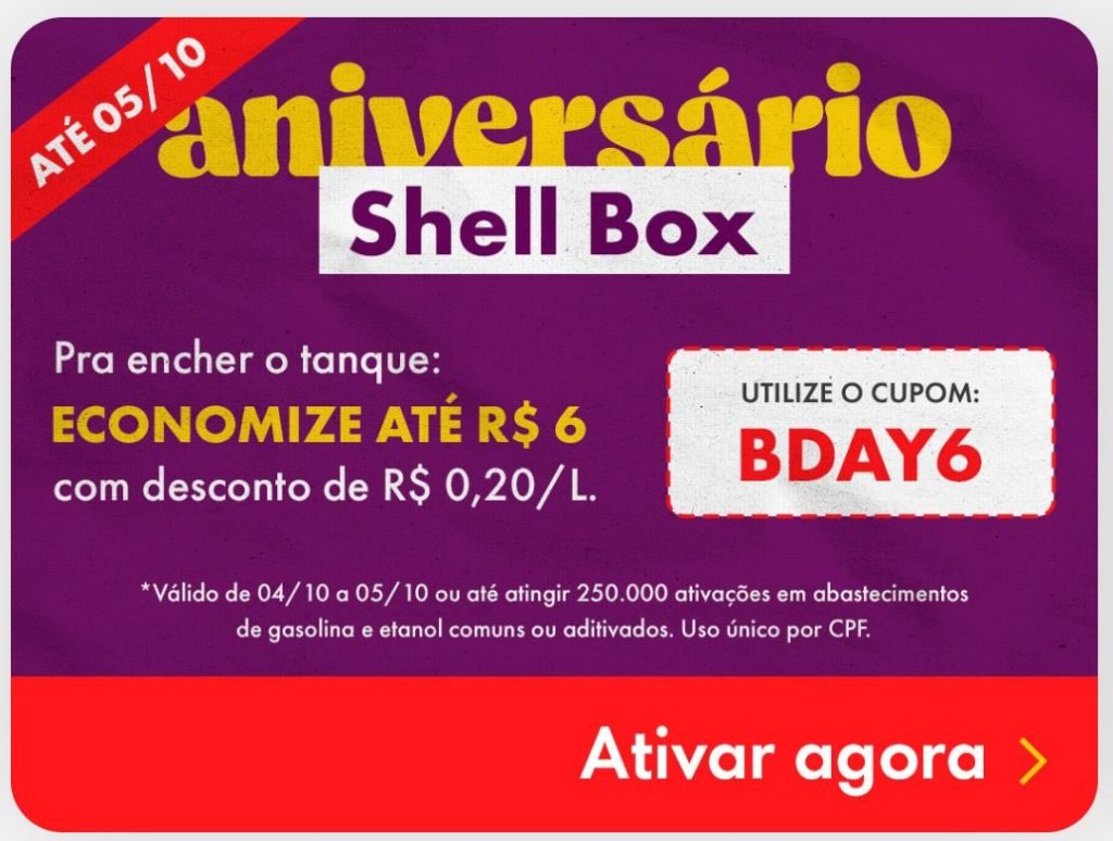 Algum leitor pensa em aproveitar? Utilize o cupom “BDAY6” [sem aspas] no app do Shell Box.
