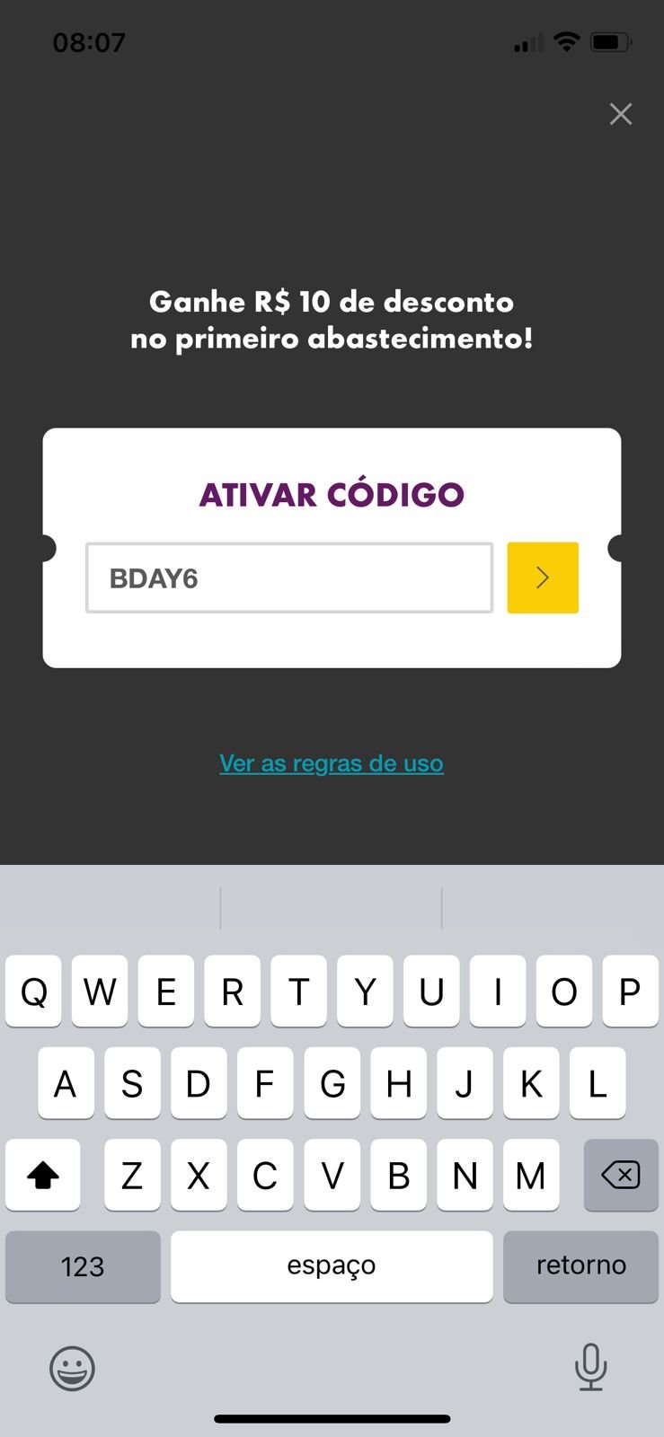 - Antes de abastecer, é necessário ativar o código no menu lateral do aplicativo;