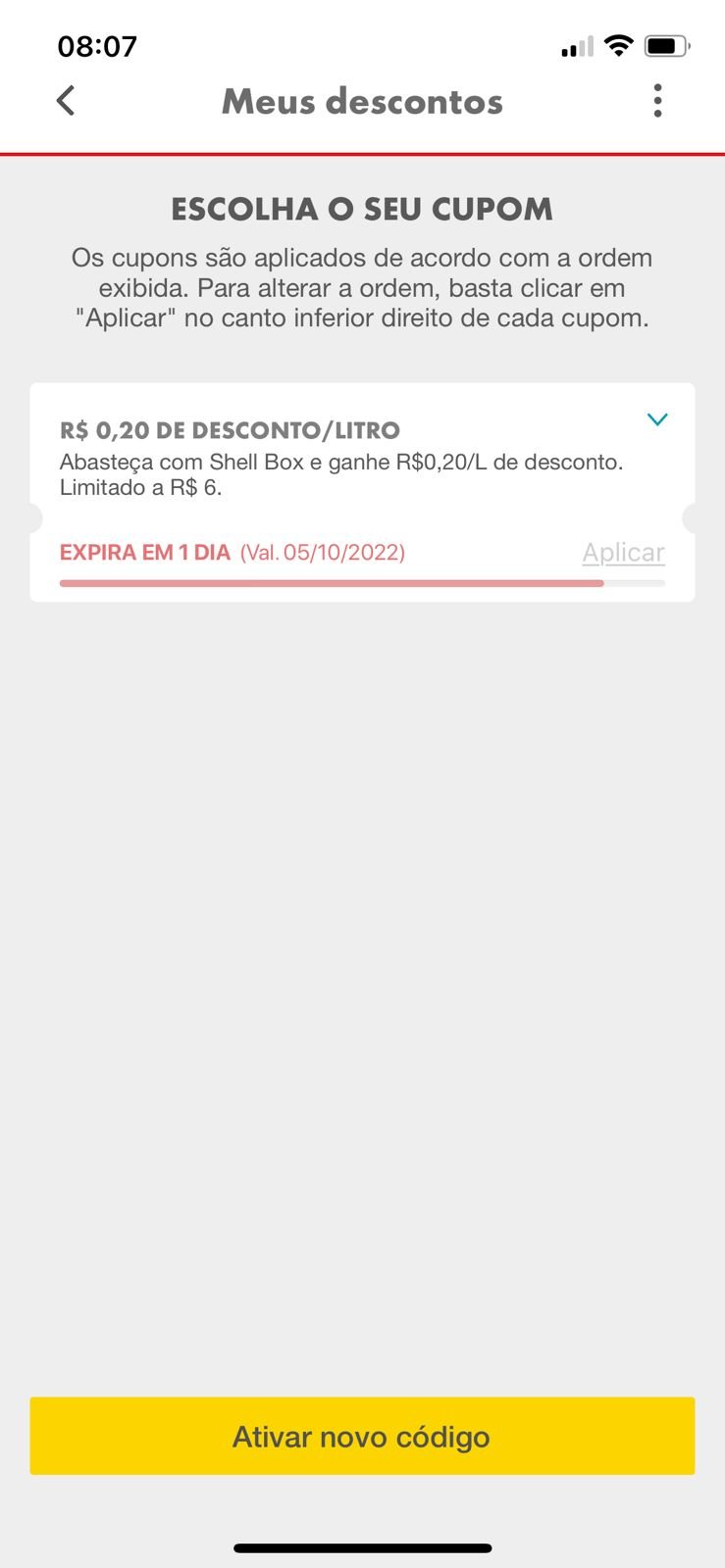 - Desconto válido para abastecimentos de gasolina ou etanol realizados até dia 05/10/2022 – ou até acabar o estoque de cupom – via Shell Box;